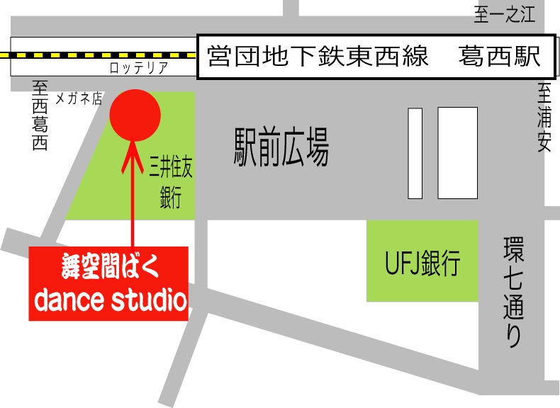 営団地下鉄 東西線 葛西駅より徒歩20秒。 葛西口を出てすぐ右折し、三井住友銀行 隣のビルの7Fです。