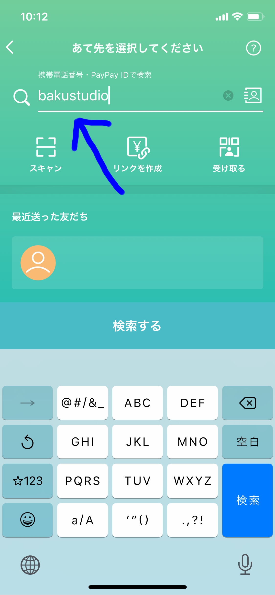 ②ID検索で「bakustudio」を検索