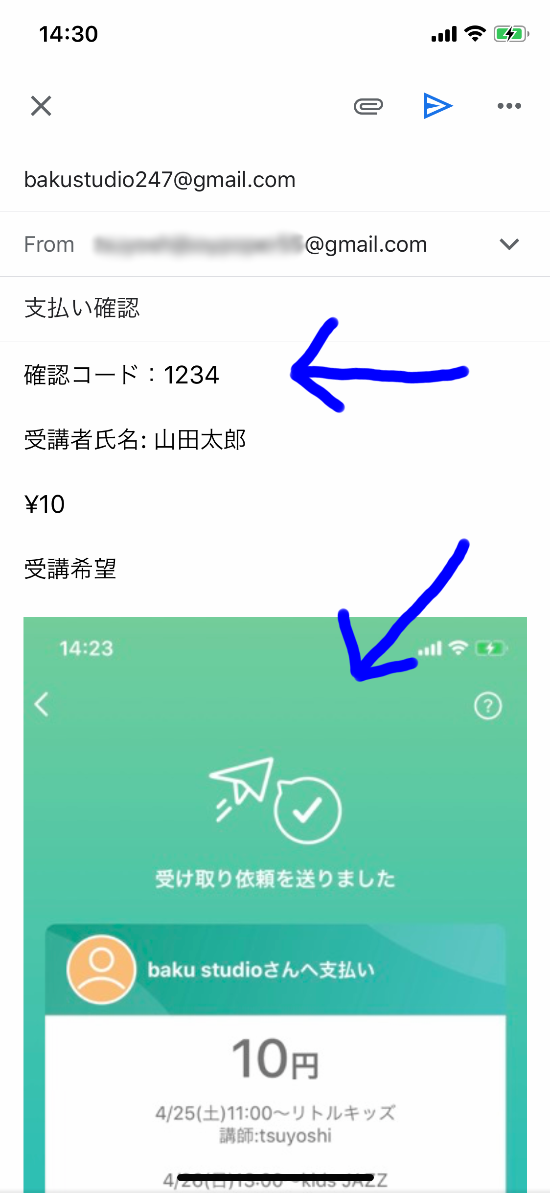 ⑥パスコードと送金した画面をスクリーンショットした画像をbakustudio247@gmail.comまで送信してください。